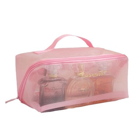 Bolsa de maquillaje de malla portátil con cremallera, bolsa de almacenamiento de artículos de tocador de viaje, organizador de accesorios de viaje