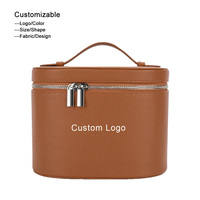 Neceser de maquillaje cosmético de cuero de viaje personalizado de fábrica OEM neceser divisor interior extraíble de cuero marrón vintage