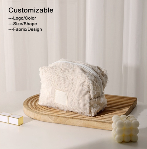カスタム3Dレース刺繍コーデュロイ化粧品バッグ大容量ハイアピールポータブルトイレタリーポーチ