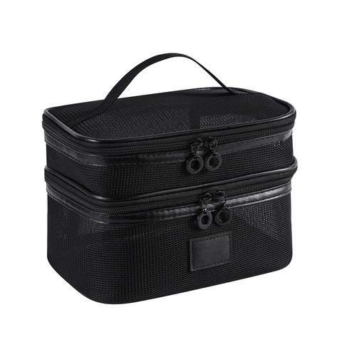 กระเป๋าเครื่องสำอางสำหรับเดินทางสองชั้นของผู้หญิงกระเป๋าเครื่องสำอางตาข่ายสไตล์แฟชั่นกระเป๋าถือเครื่องสำอางแบบพกพา