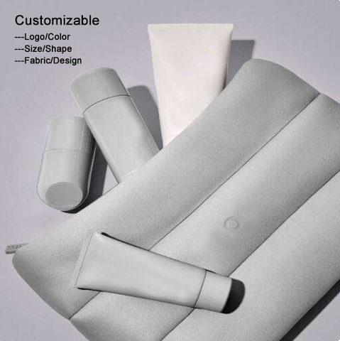 กระเป๋าใส่เครื่องสำอางเดินทางทรงพองทำจากนีโอพรีนมีซิปขนาดใหญ่มีโลโก้ออกแบบได้ตามต้องการ