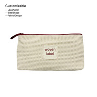 กระเป๋าเครื่องสำอางวาฟเฟิลทรงแบนราบมีฟองสีขาวพิมพ์ลายได้ตามต้องการกระเป๋าเครื่องสำอางผ้าวาฟเฟิลจำนวนมาก
