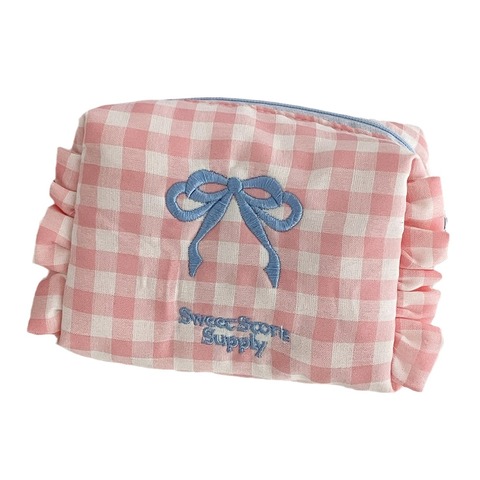 กระเป๋าใส่เหรียญแบบปักลายสก็อตแบบพกพาสำหรับเดินทางสำหรับนักเรียนแฟชั่นกระเป๋าใส่เครื่องสำอางบุผ้าคอตตอน