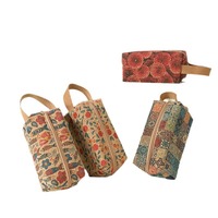 กระเป๋าเครื่องสำอางแบบเย็บผ้าลายผลไม้สไตล์วินเทจคุณภาพสูง ปิดด้วยซิป เป็นมิตรกับสิ่งแวดล้อม ทำจากไม้ก๊อก